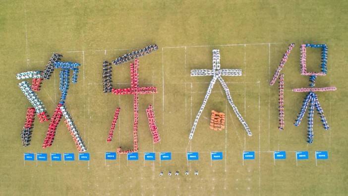 在掌声和欢笑声中,在全体运动员合力拼成的“欢乐太保”四个大字中,本届职工趣味运动会圆满落幕。