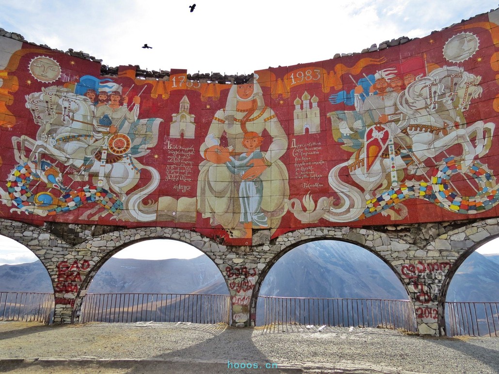 继续前行,经过比较讽刺意味的俄格友谊纪念碑观景台逗留片刻,高加索山脉的滑雪胜地古道里之后,我们到达卡兹别克雪山脚下,入住酒店。