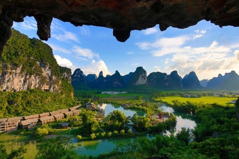 明仕田园风光,距大新县县城53公里,为国家一级景点。方圆20公里的景区山清水秀,山环水绕,素有小桂林之称。这里翠竹绕岸,农舍点缀,独木桥横,稻穗摇曳,农夫荷锄,牧童戏水,风光俊朗清逸,极富南国田园气息。