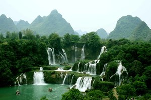 德天瀑布位于中国广西崇左市大新县硕龙乡德天村,中国与越南边境处的归春河上游,瀑布气势磅礴、蔚为壮观,与紧邻的越南板约瀑布(“Bản Giốc & Đức Thiên”)相连,是亚洲第一、世界第四大跨国瀑布,年均水流量约为贵州黄果树瀑布的三倍,为中国国家AAAA级旅游景区。